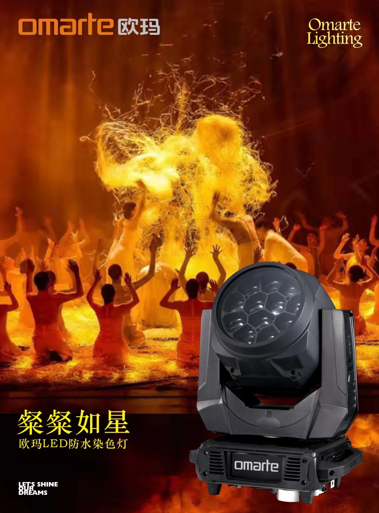顏值光感初見傾心 性能體感粲粲如星 歐瑪EOS-F600系列LED防水染色燈做為一款顏值光感、操控逸感、性能智感的新品,正帶給戶外演出市場一次品質與實力傳承的俱佳體驗。