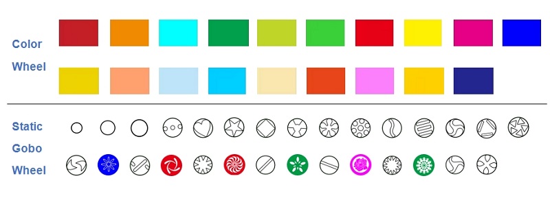 lColor: One 19-color wheel + blank, with bidirectional rotation rainbow effect;