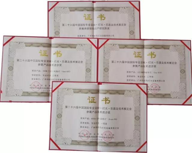 在此次評選活動中,歐瑪燈光三款產品榮獲產品技術進步獎,其中600wLed切割燈(Ares-P6)榮獲“產品技術進步一等獎”、LED蜂眼染色燈(Eos-B19)和440w三合一電腦燈(Seer 800)均獲得“產品技術進步二等獎”。