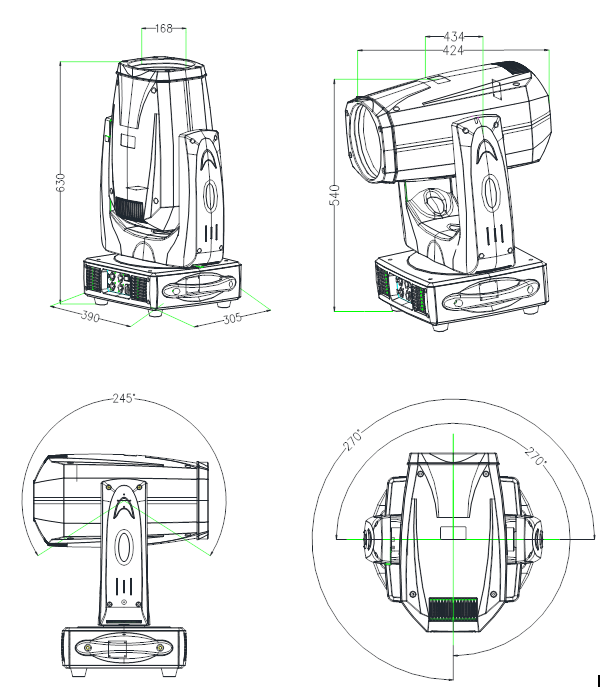 · DMX 信號連接: 3芯 或者5 芯XLR 輸入和輸出。